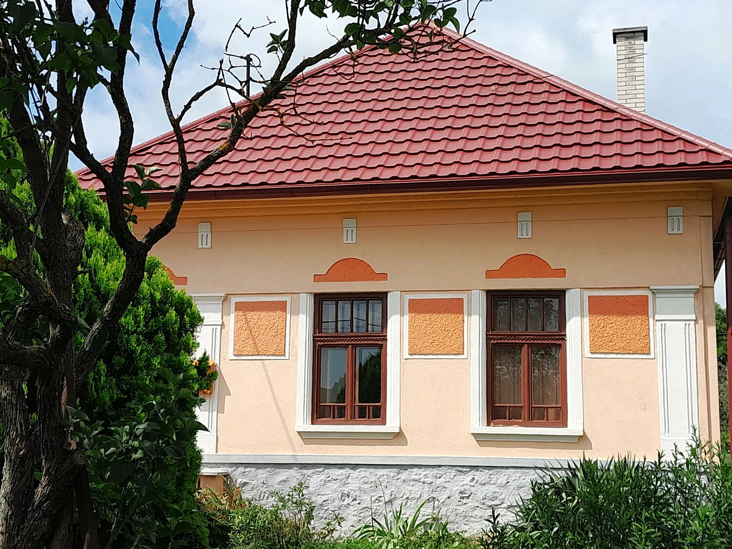 s hospodárskymi budovami. Charakterizuje ho jednouchá, ale vznešená forma panského bývania. Dom je situovaný mimo líniovej uličnej zástavby, na voľnej lánovej parcele, od cesty oddelený predzáhradkou na spôsob mestskej vilky. Osadením domu do svahu a zvýšeným podpivničením získala fasáda na monumentalite, čo sa premietlo aj do jej riešenia. Nad soklom vymurovaným z lomového kameňa sa dvíha hladko omietnutá fasáda s dvojicu okien prednej izby na úrovni prvého nadzemného podlažia. Fasáda je ukončená štítovým oknom polygonálneho tvaru, lemovaným plastickou, farebne zvýraznenou pásovou paspartou. Jednoducho riešená fasáda je v úrovni parapetu okien a nad oknami v celej svojej šírke delená horizontálne vedenou vystupujúcou rímsou. Dom je v celej dĺžke, i s hospodárskymi budovami, prekrytý sedlovou strechou, nad fasádou ukončenou polvalbou.