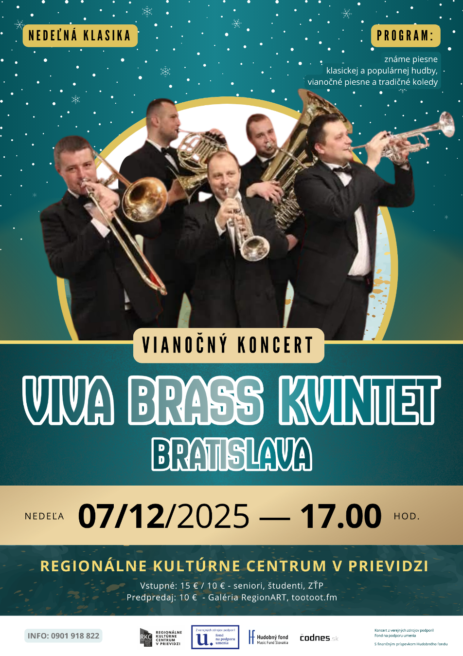 Koncert dychového kvinteta prinesie zmes známych skladieb skladateľov klasickej a populárnej hudby a vianočné koledy.